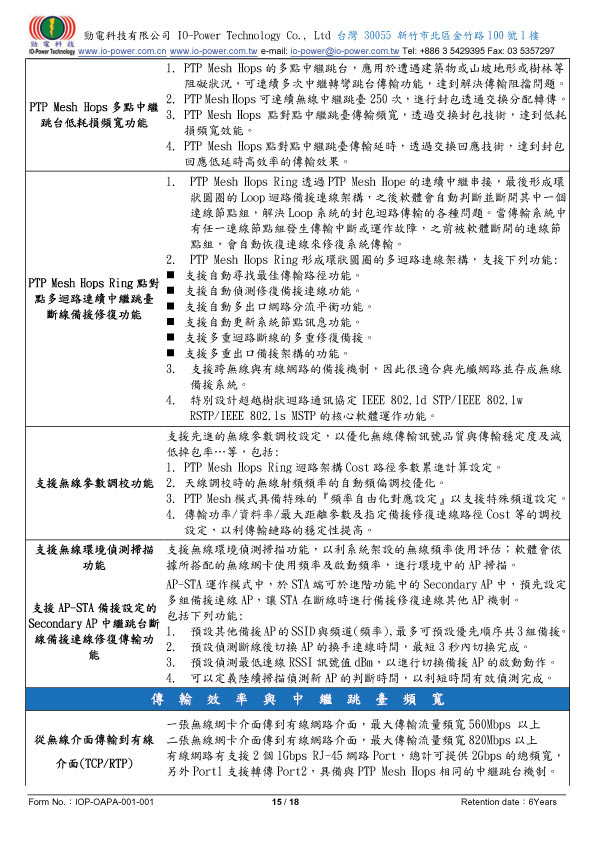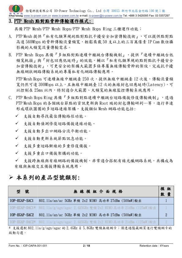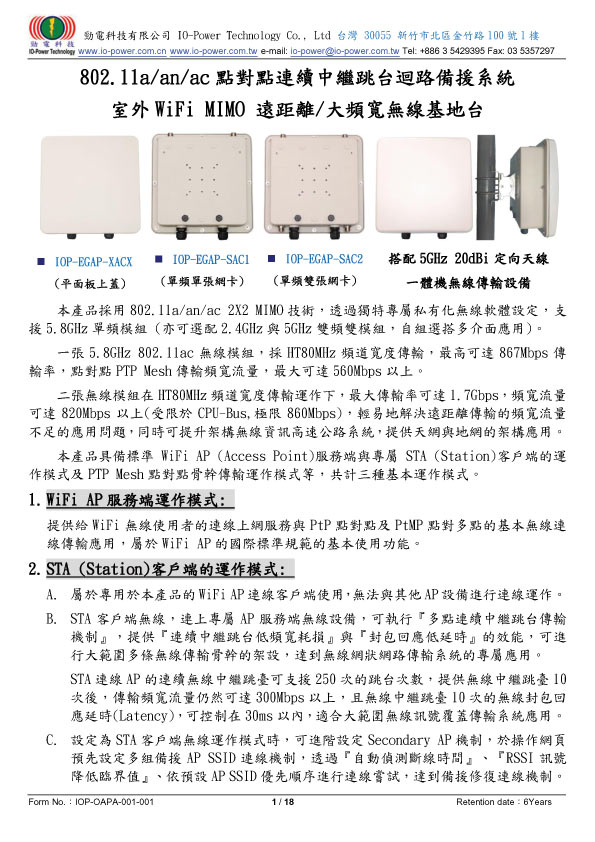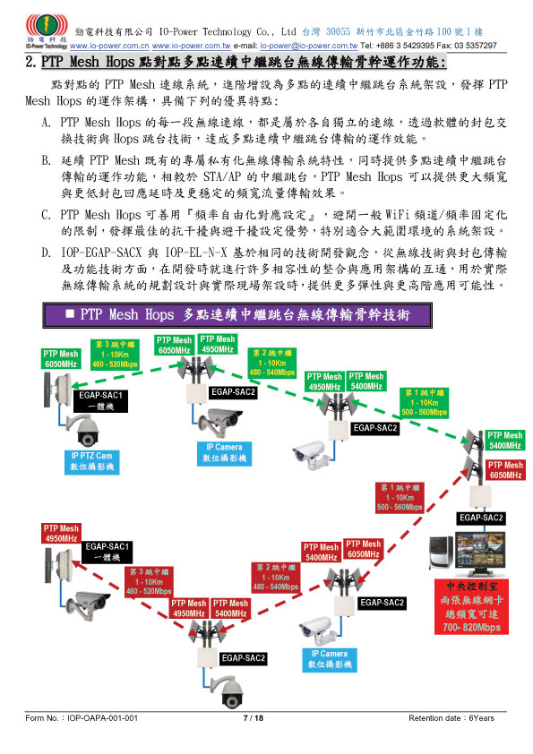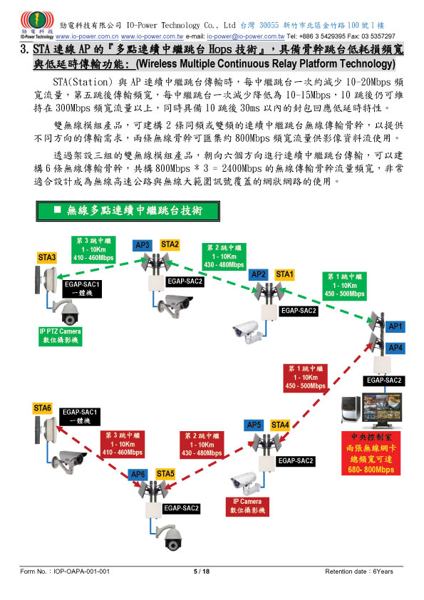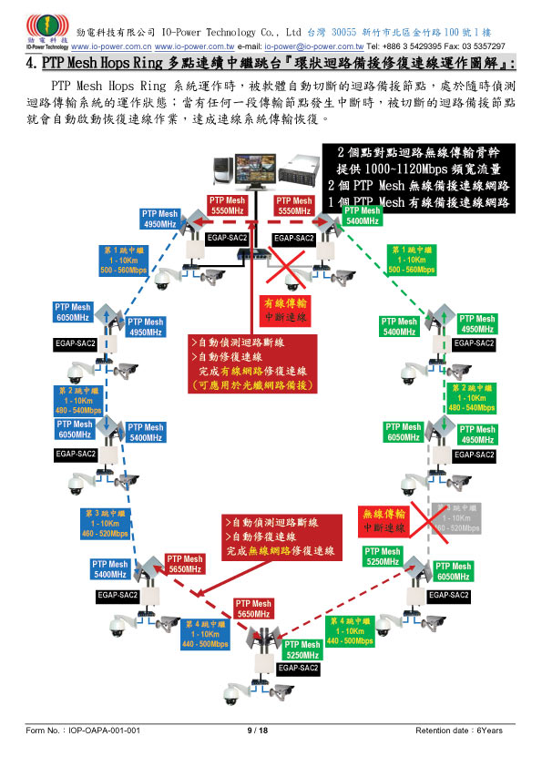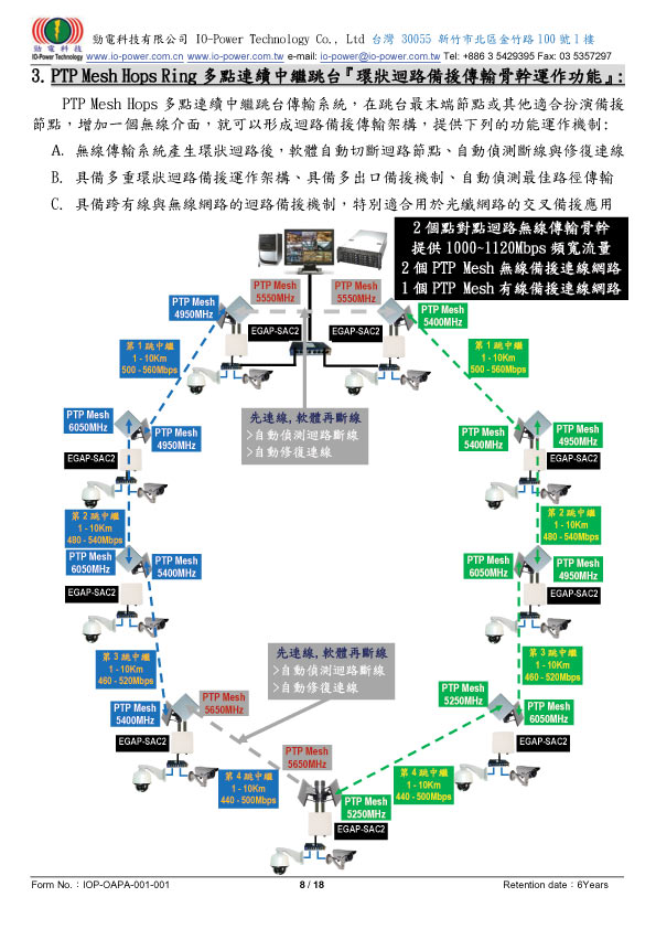 802.11a/an/ac點對點連續中繼跳台迴路備援系統