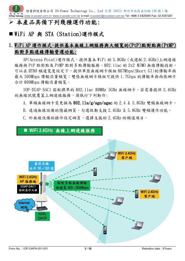 2x2 MIMO 高功率27dBm (500mW)輸出 |