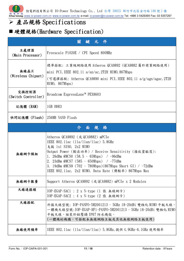 802.11a/an/ac 5GHz單頻